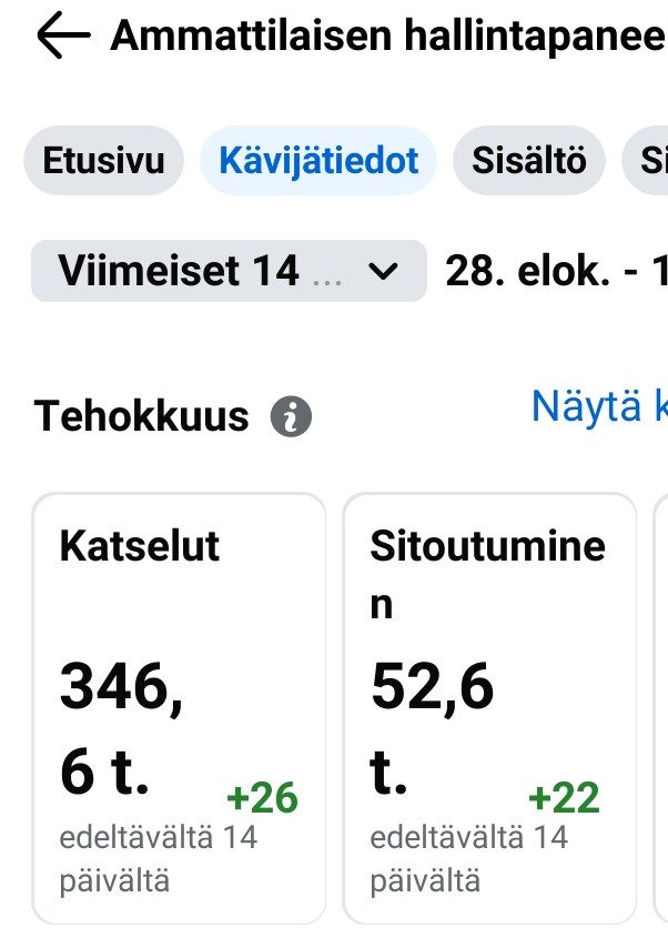 Lyhyt kuvaus: Teimme useammalle yritykselle sometilien optimointia ja jatkuvaa kehitystä sekä järjestimme aiheesta käytännönläheisiä kursseja ja konsultointeja. Autamme yrityksiä parantamaan näkyvyyttään ja hallitsemaan somekanavia tehokkaammin. Teemme myös Meta mainoksia ja ratkaisemme niiden pulmia. Pidämme koulutuksia AdsManager, Google Ads, Instagram mainokset, Facebook mainokset, Business Suite, TikTok mainokset ja Linkedin Ads mm.